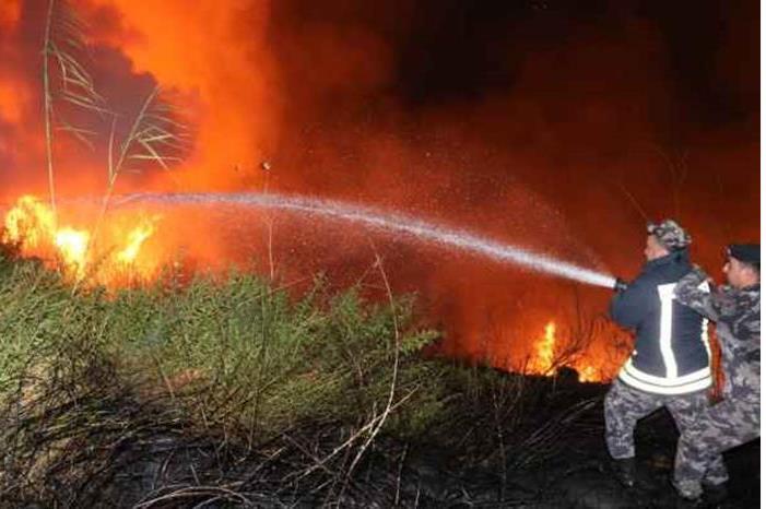 إصابات بين كوادر الدفاع المدني خلال إخماد حريق في إربد