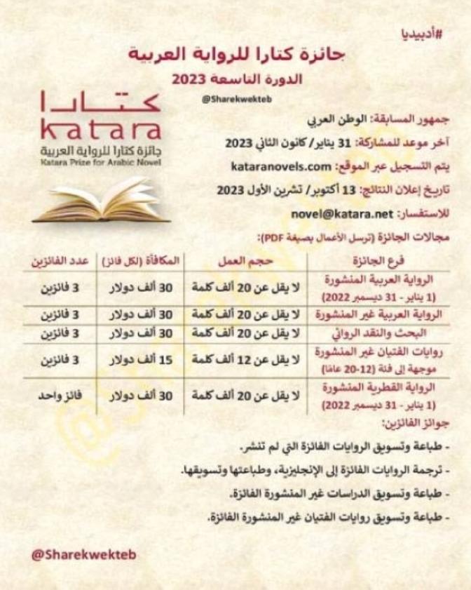 "فتح باب الترشح لجائزة كتارا للرواية العربية "