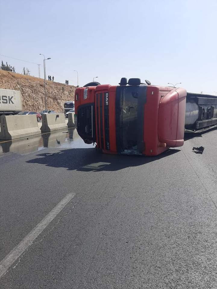 الأشغال: اغلاق مسرب من طريق المطار اثر تدهور مركبة شحن