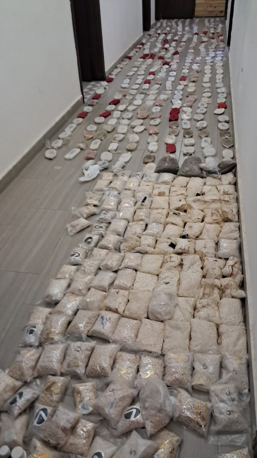مكافحة المخدرات تداهم تاجراً للمخدرات وتلقي القبض عليه وتضبط كميات ضخمة من مادة الحشيش والحبوب المخدرة بحوزته
