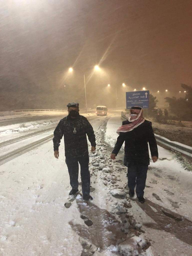 جهود متواصلة يبذلها رجال مديرية الامن العام بكافة تشكيلاتها من شرطة ودفاع مدني ودرك في هذه الظروف الجوية الني تعم المملكة