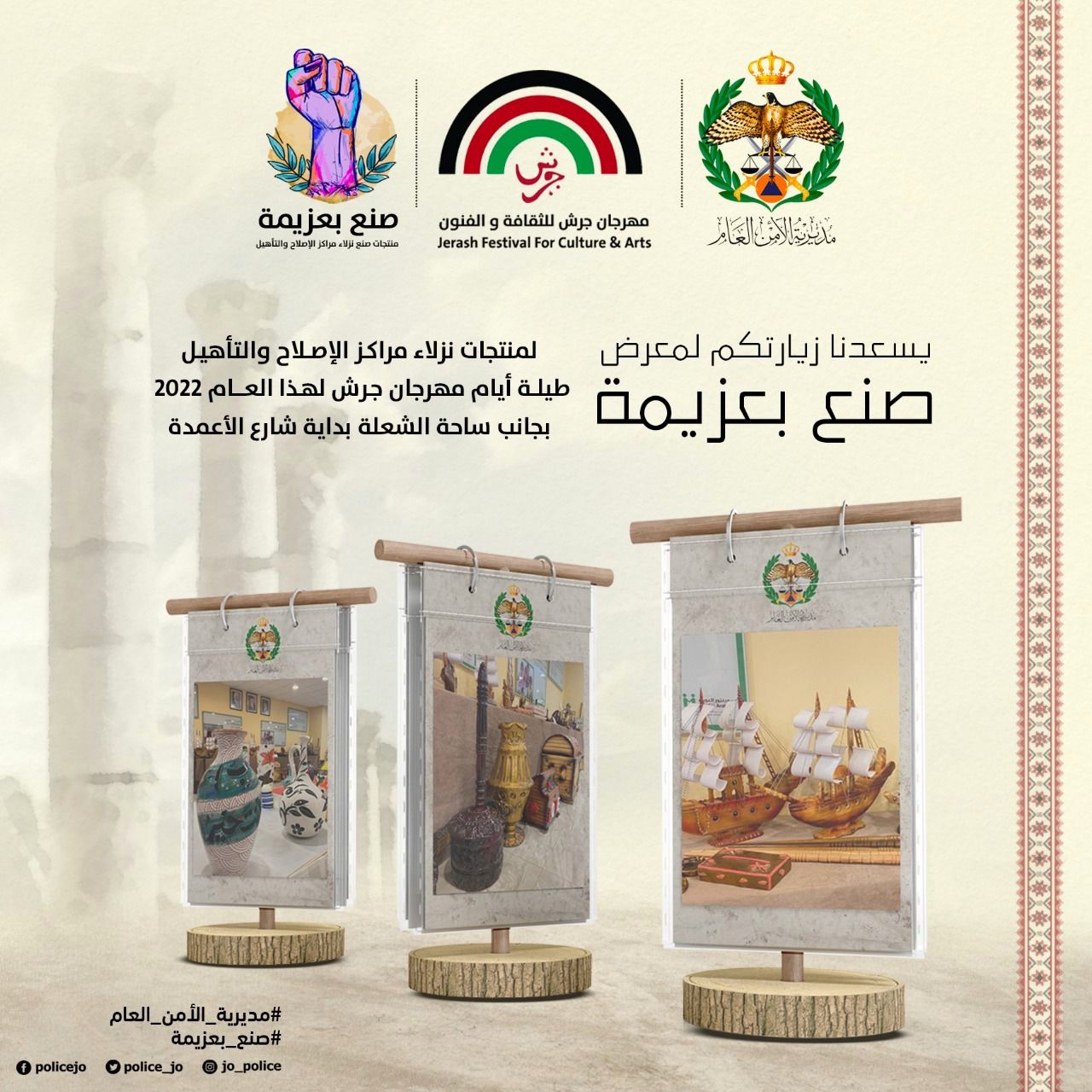 "صُنع بعزيمة" لمنتجات نزلاء مراكز الإصلاح والتأهيل يواصل مشاركته في مهرجان جرش للثقافة والفنون