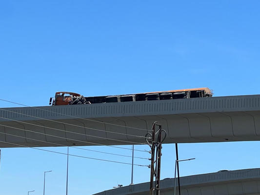تدهور صهريج نضح على جسر المدينة الرياضية"فيديو وصور"