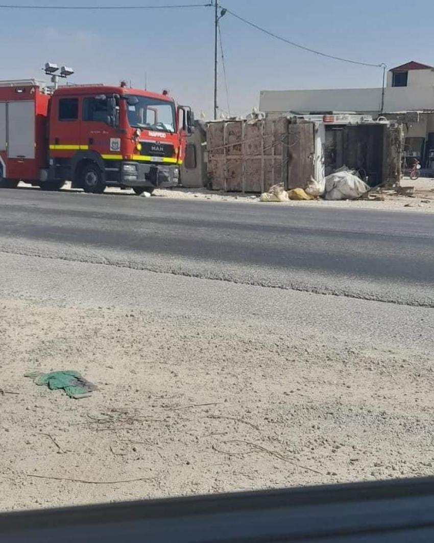 إصابة 3 أشخاص بتدهور ضاغطة نفايات بإربد "صور"