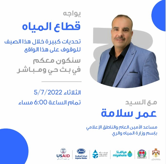 المياه تنظم حلقة تواصل بث مباشر عبر الفيسبوك يوم الثلاثاء لقضايا المياه