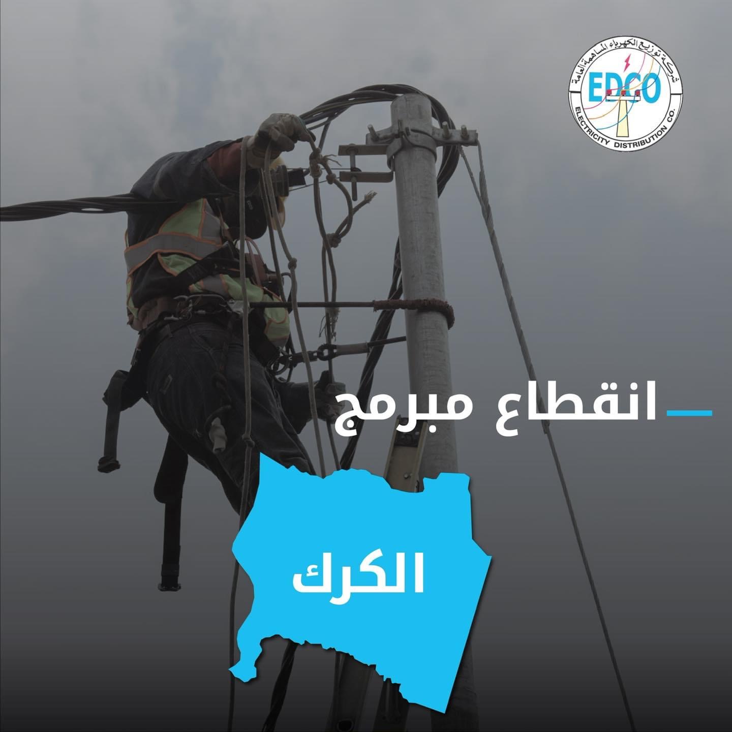 الكرك / هذه المناطق دون كهرباء ليوم غد الاثنين من الساعة 10 صباحا حتى 2 ظهرا
