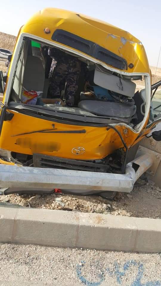 وفاة سائق حافلة جامعية وإصابة 15 طالبا بحادث سير في اللجون بالكرك (صور)