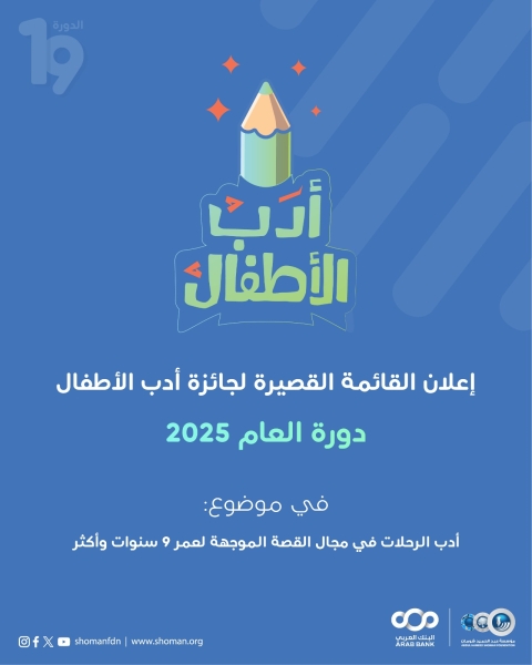 "شومان" تعلن القائمة القصيرة لجائزة أدب الأطفال لهذا العام
