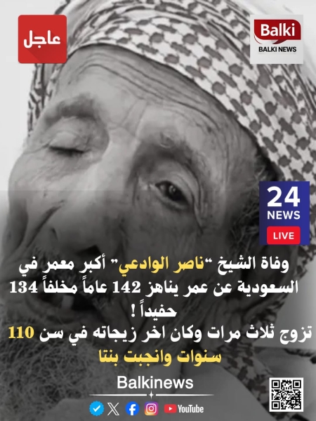 عاجل.. “ناصر الوادعي” أكبر معمر في السعودية عن عمر يناهز 142 عاماً مخلفاً 134 حفيداً