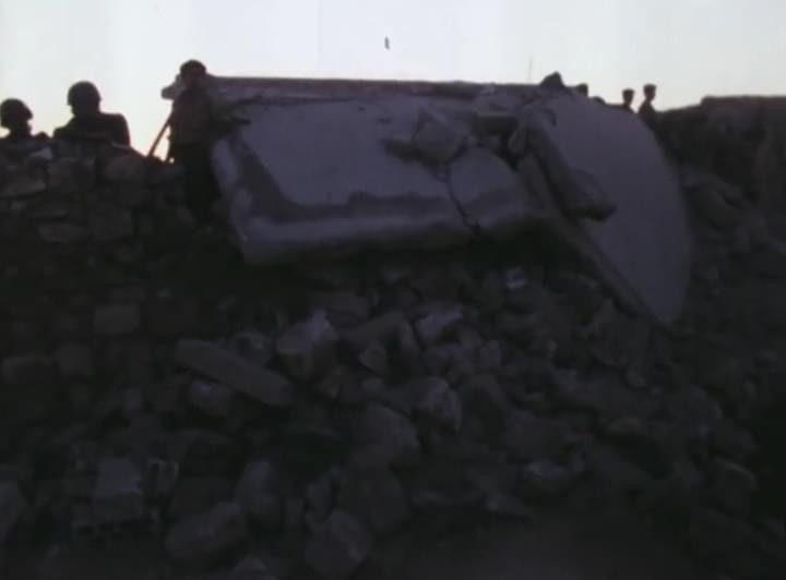 من الذاكرة : دمار في قرية الذنيبة الاردنية الواقعة بالقرب من الحدود السورية - في منطقة قُتل فيها ما لا يقل عن 18 بصواريخ طائشة خلال معركة جوية إسرائيلية - سورية. 1972.