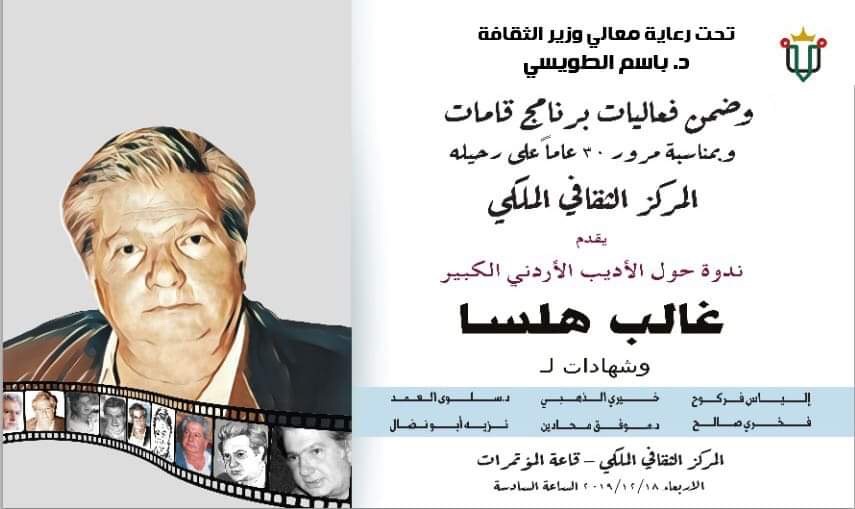 " غالب هلسا روحاً تتفيء حنايا المركز الثقافي الملكي"