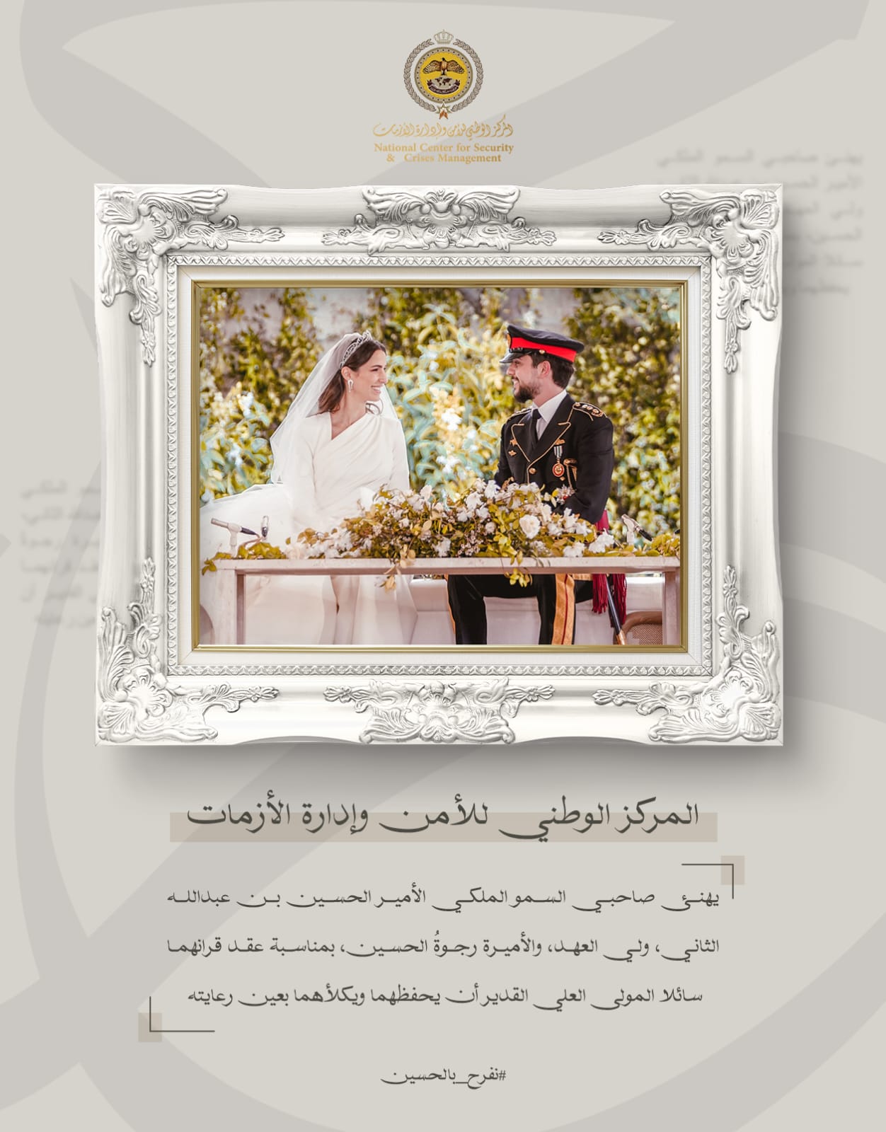 المركز الوطني للأمن وإدارة الأزمات يهنئ بزفاف ولي العهد