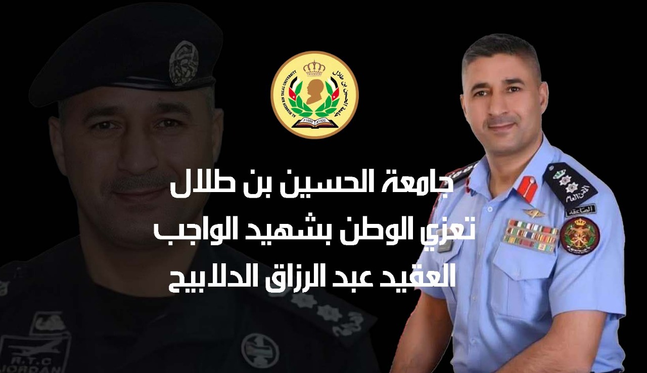 جامعة الحسين بن طلال تنعى شهيد الواجب العقيد عبد الرزاق الدلابيح.