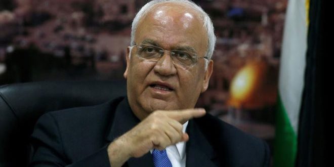 عريقات: تصريحات واشنطن حول ضم أراض فلسطينية إلى الاحتلال مرفوضة