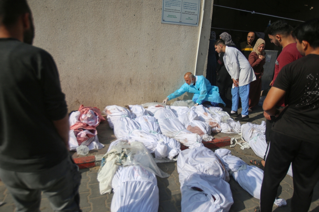 تكدس جثامين الشهداء في المستشفى إثر مجزرة النصيرات