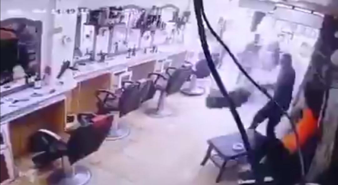 بالفيديو مجموعة شباب قاموا بتحطيم صالون حلاقة والأعتداء بالضرب على شاب بداخله