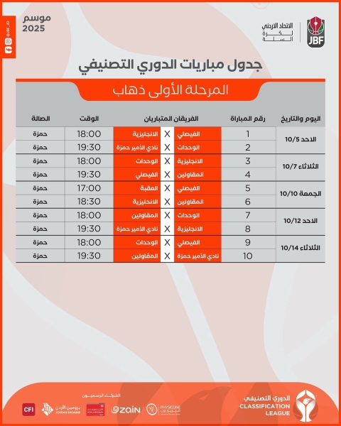 حصاد الاسبوع السابع .. الرمثا يواصل صدارته للدوري الأردني