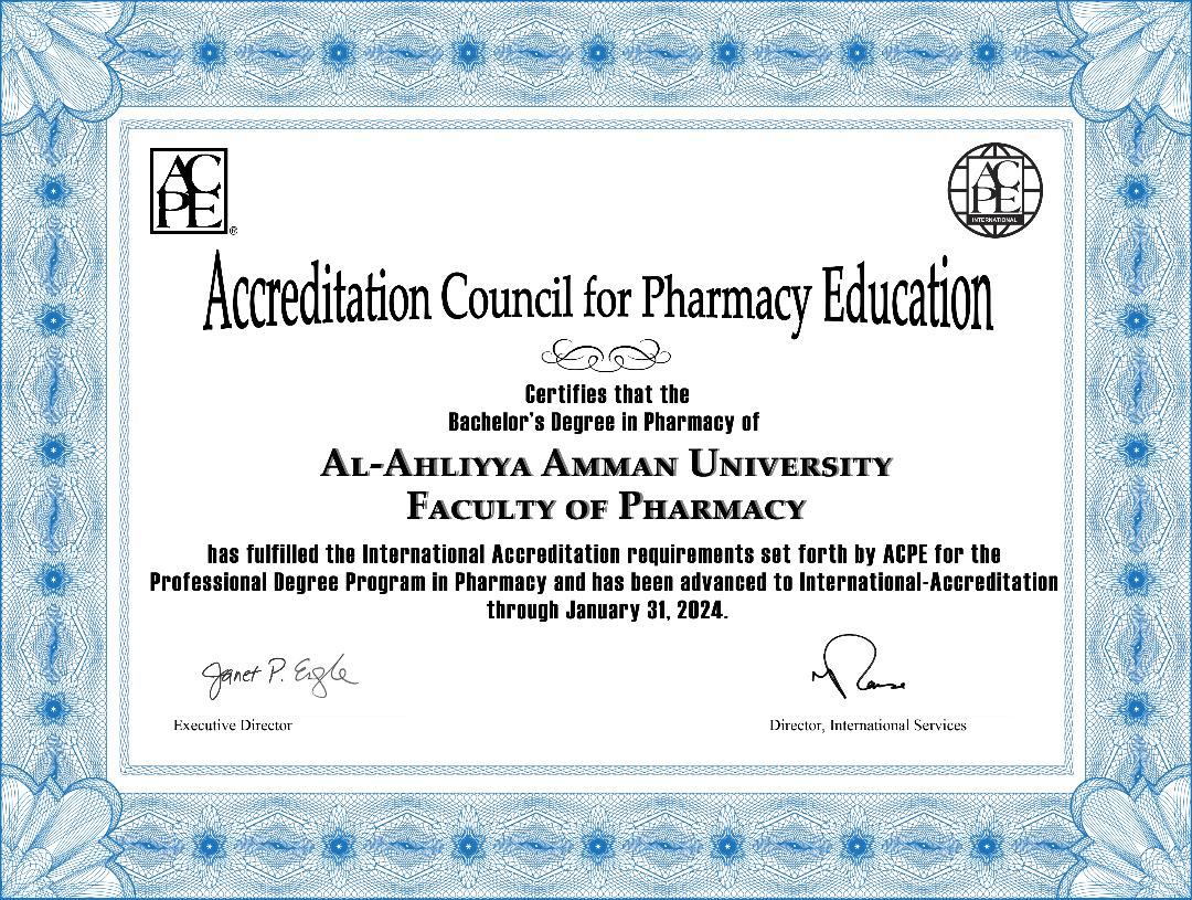 صيدلة عمان الاهلية تحصل على اعتماد ACPEالأمريكي