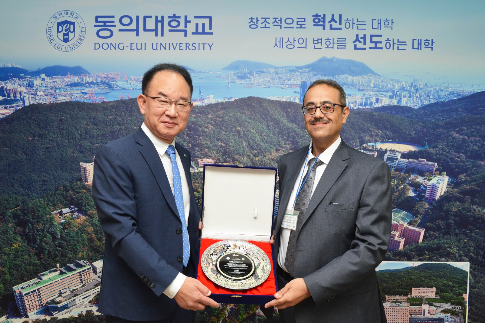 رئيس وفد البلقاء التطبيقية إلى الجامعات والمعاهد الكورية يسلم العجلوني درع جامعة دونج ايوا الكورية